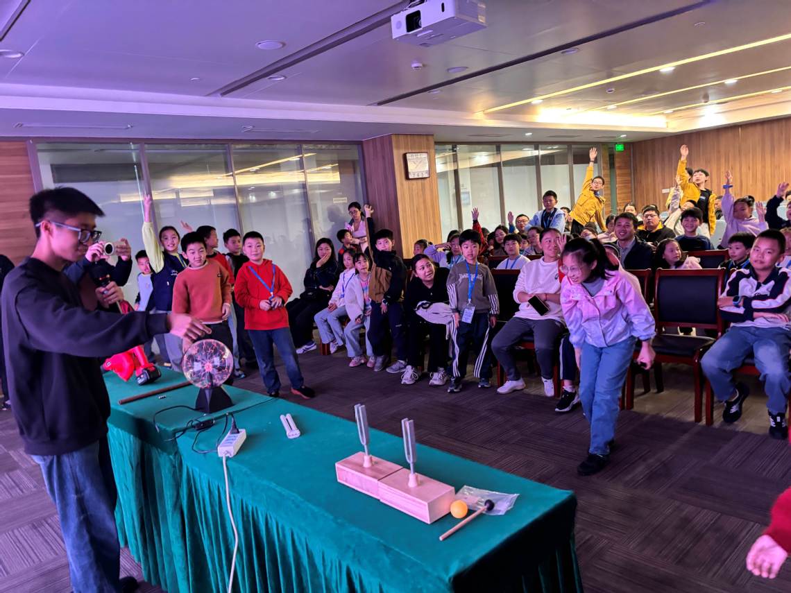孩子们在观察、提问、操作中沉浸式体验科学的乐趣,现场气氛热烈,掌声与笑声不断。志愿者们不仅耐心讲解实验背后的物理原理,还适时融入用电安全、实验规范等科普常识,引导孩子们树立科学态度与安全意识。