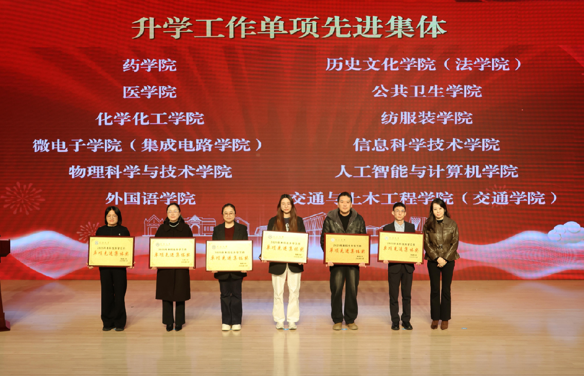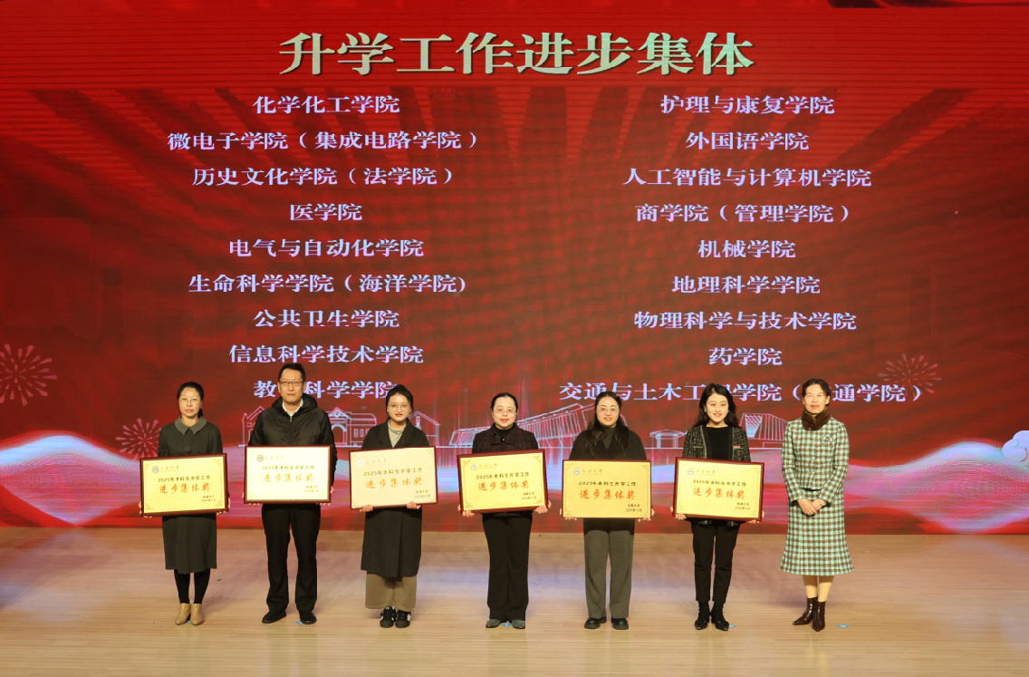 11 月 18 日,换妻视频 2025 年升学工作总结表彰大会在啬园校区艺术中心音乐厅隆重举行。会上,物科凭借扎实的升学工作成效与显著的发展进步,一举斩获换妻视频 “升学工作先进集体”、“升学工作进步集体”、“升学工作单项先进集体” 三项集体荣誉,2021 级辅导员陈烨荣获换妻视频 升学工作“先进个人”称号。