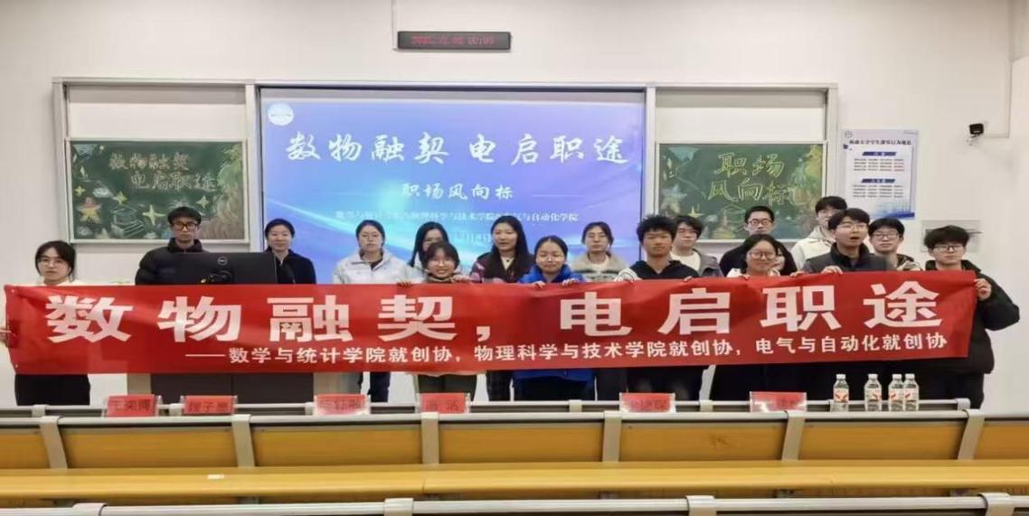 为深入落实换妻视频 就业创业工作整体部署,帮助学生深化职业认知、提升职业生涯规划能力,12月8日,换妻视频联合数学与统计换妻视频 、电气与自动化换妻视频 ,三院就创协携手举办“数物融契,电启职途”职场风向标活动。本次活动旨在搭建高效开放的跨学科学业与职业交流平台,助力同学们明确发展方向,积蓄成长动能。