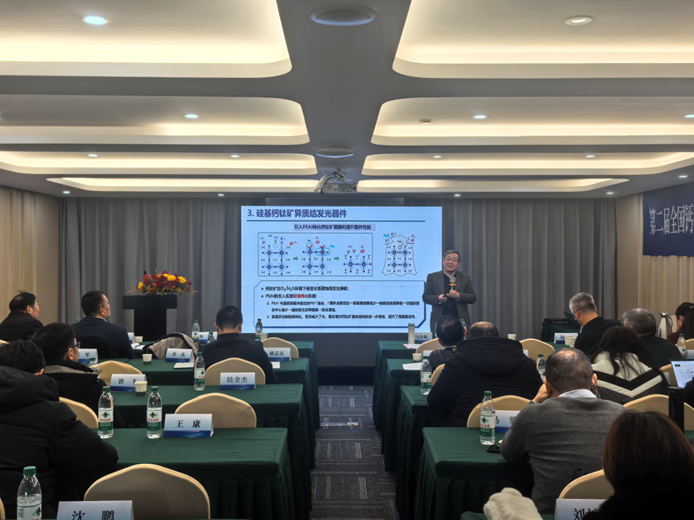 蒋兵在致辞中对研讨会的顺利召开表示祝贺,并简要介绍了南通市在科技创新与产业布局方面的最新进展。他指出,本次会议紧扣钙钛矿材料的前沿科学研究与产业转化趋势,通过深入的学术交流与思想碰撞,对推动该领域的技术突破与区域产业升级具有重要意义。他强调,应进一步强化高校、科研院所、企业及相关学会之间的协同联动,积极构建跨学科、跨领域的合作生态,共同为南通市乃至长三角地区的产业创新发展注入持续动能。
